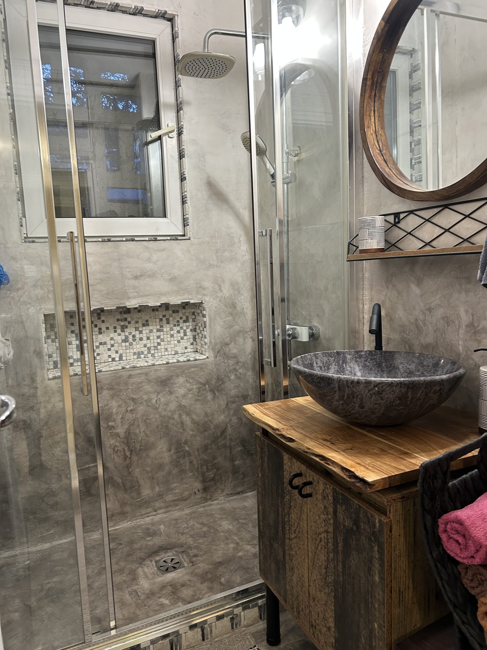 Microcement is perfect if you love clean, seamless spaces. Itβs a thin decorative coating that can be applied directly over existing surfaces, creating a smooth, modern finish without the mess of ripping everything out. No grout lines, no bulky tiles – just one continuous surface that feels calm and contemporary.