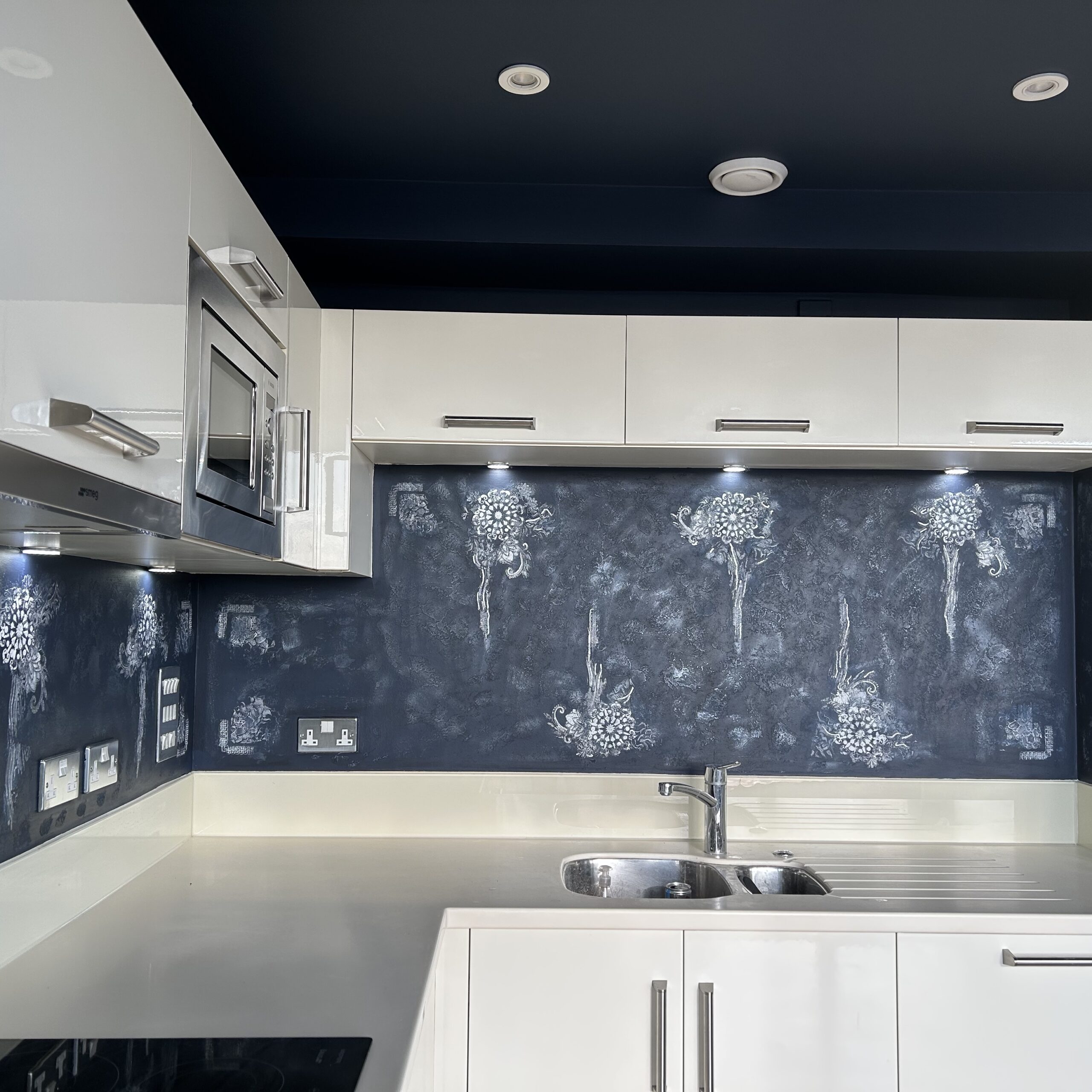 Our work blends traditional craftsmanship with a refined, creative approach – delivering surfaces that feel layered, expressive and considered. From calming microcement bathrooms to bold feature walls and hand-finished artistic interiors, every project is treated as a piece of design rather than just a finish.